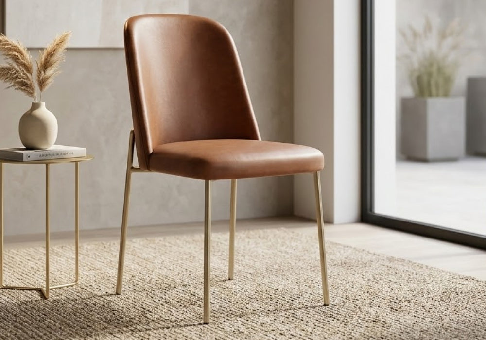 Conjunto de 4 Cadeiras de Aço Estofada Lucille Champanhe com PU Caramelo -