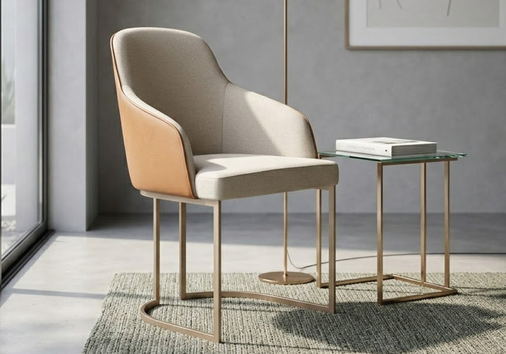 Conjunto de 2 Cadeiras de Aço Estofada Lucille Champanhe com Linho Off-White -